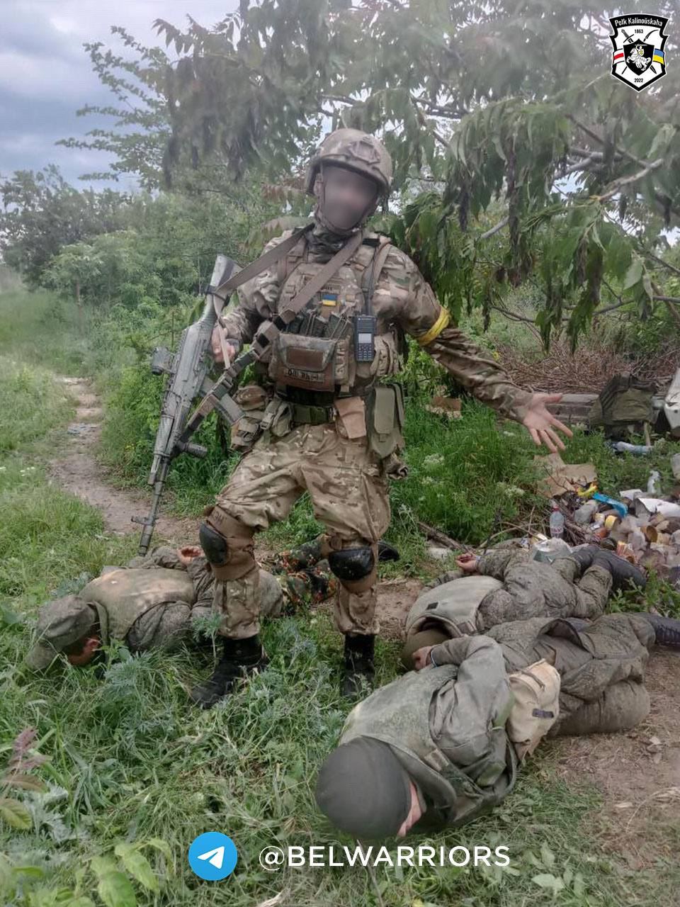 Бійці полку імені Кастуся Калиновського взяли в полон чергову партію окупантів. Вони опублікували фото з полоненими на своїй сторінці в Telegram.