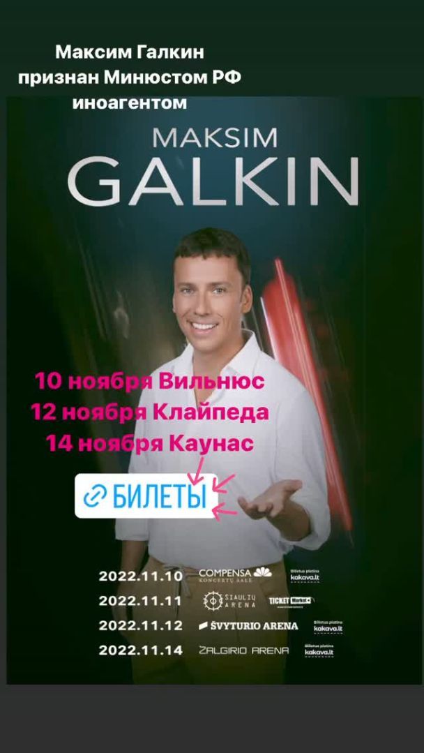 Цю ж фразу Галкін розмістив у сторіз свого фотоблогу на афішах прийдешніх концертів у Литві.