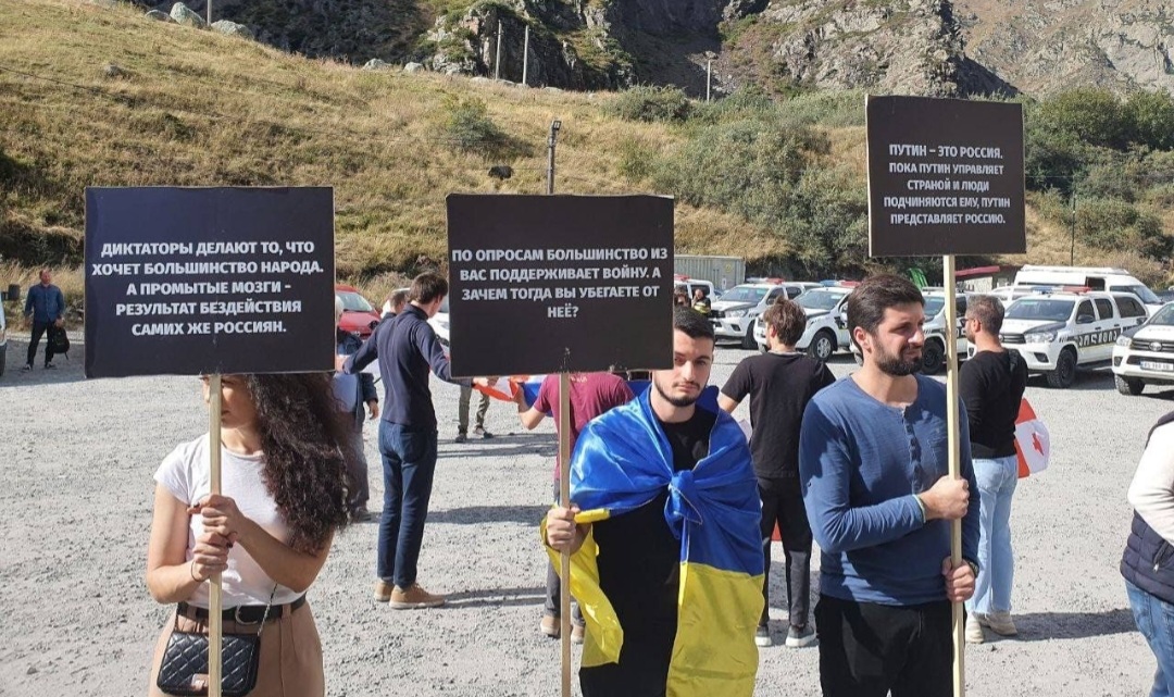 Люди тримали плакати, які засуджували агресію рф проти України, а також нагадували росіянам, що до оголошення мобілізації вони підтримували війну.