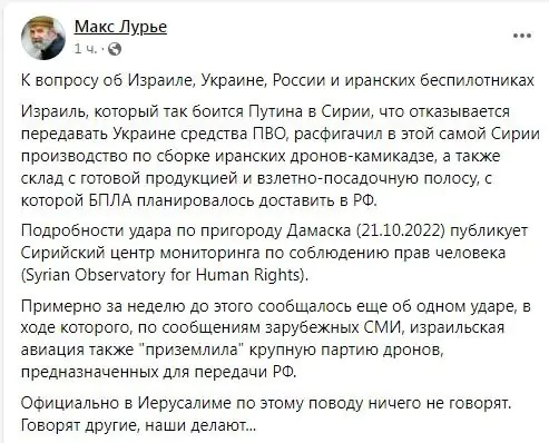 Тим часом ізраїльський журналіст Макс Лур’є повідомив, що готова партія зброї, яка там була зроблена, призначалася для росії.