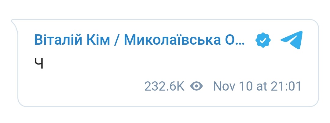 Голова Миколаївської ОВА опублікував у себе в Телеграм пост з літерою «Ч». На тлі стрімкого контрнаступу ЗСУ на півдні, користувачі Мережі припустили, що Кім натякає на деокупацію славнозвісної Чорнобаївки під Херсоном.